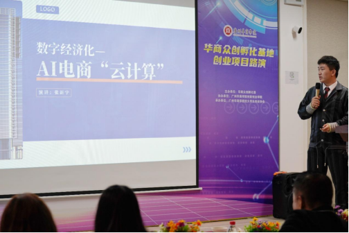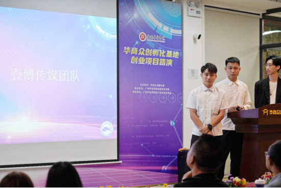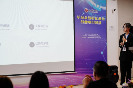 莅临本次路演会的嘉宾有广东孵客科技孵化集团总裁助理、投资总监路斌先生,华商数字化技术与应用研究院院长彭秀东教授,广州华商学院产教融合办公室唐显锋副主任,广东华商众创孵化器有限公司项目专员罗丽玲女士以及OK138太阳集团陈欢老师。