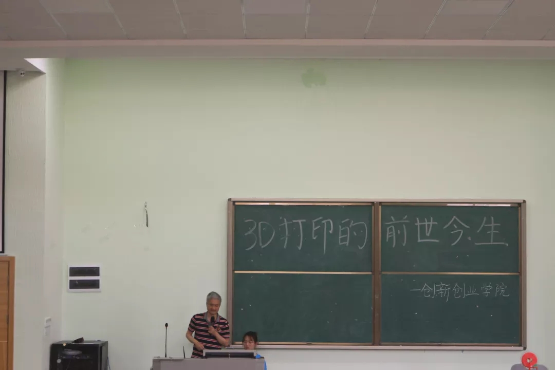 讲座开始,朱献文先生先通过几段小视频,让大家了解了什么是3D打印,同时,朱献文先生向在座的同学们发起两个问题。
