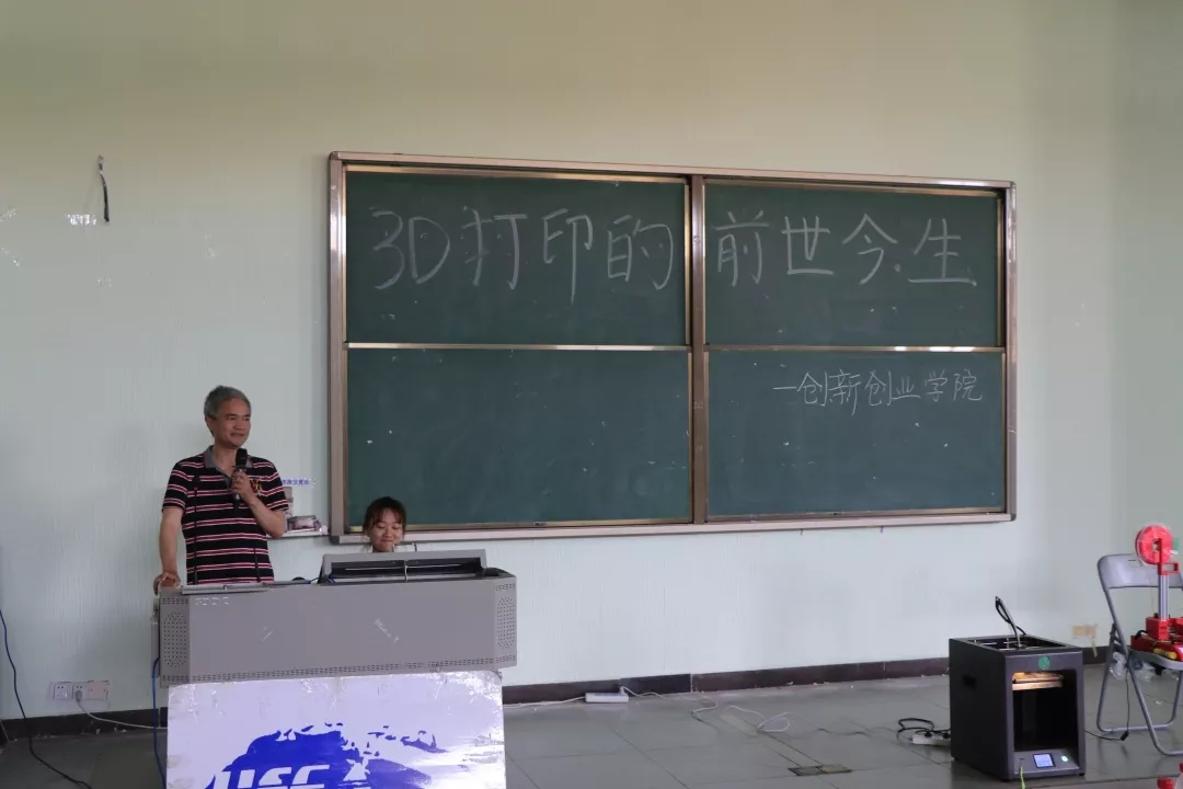 于是,朱献文先生现场为我们带来俩台3D打印机,并为同学们简单介绍了一下3D打印机的工作原理。