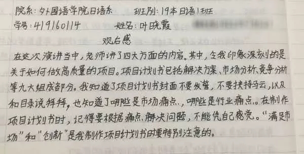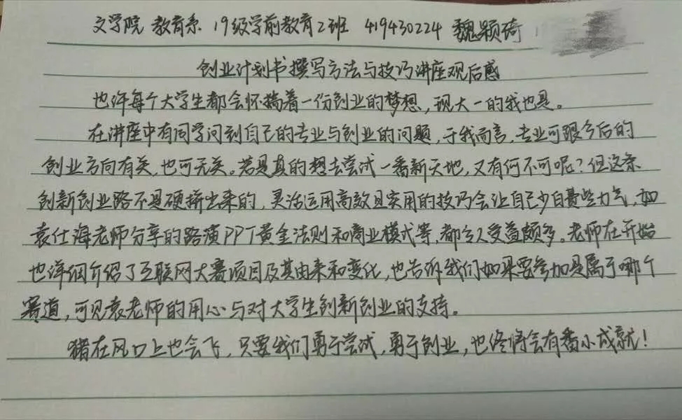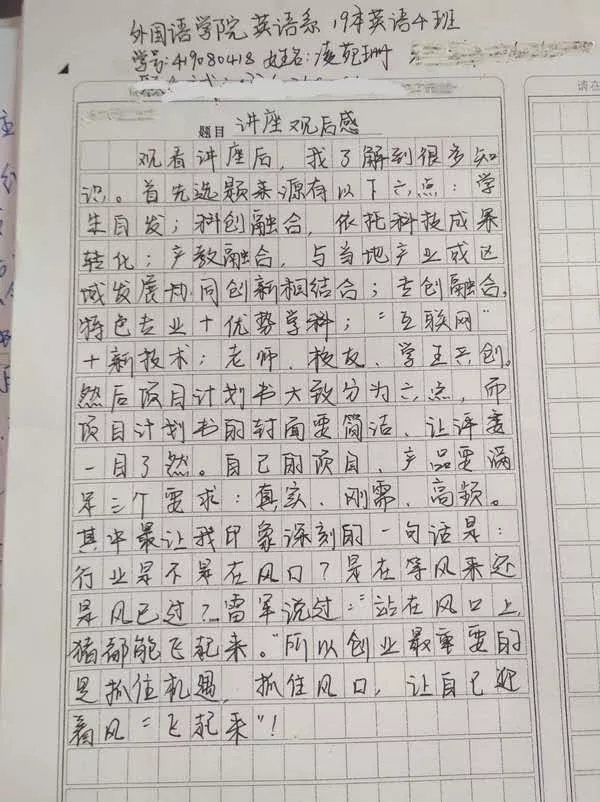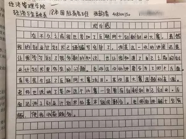 看了以上的优秀观后感,相信同学们在此次讲座中收获了不少干货,在讲座的最后老师也耐心为大家解答了许多问题,每一次讲座,都是思想与火花的碰撞。疫情期间,虽然不能外出,我们还是能参加各种精彩的线上活动,抓住每一次机遇,你终会成为一个优秀的创业人!