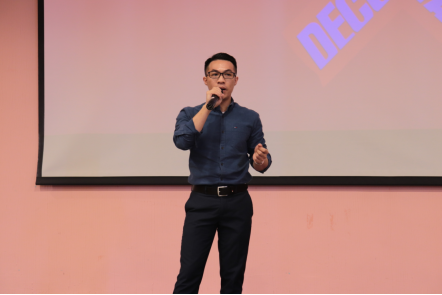 严杰辉师兄开始了精彩的演讲,他将创业经历娓娓道来。他第二次高考考到2A,不服气再考一次考到华商,却陷入支付不起高昂学费的窘境,因此他选择去做兼职。事实证明把观察与经验和谐地运用到生活上就是智慧,严杰辉师兄在兼职过程中发现中介的商机,于是他开始创业,实现了从0到1再到N,最终将企业做强做大。接着严师兄向大家分享了他的营销理念,大家从中收获颇多。