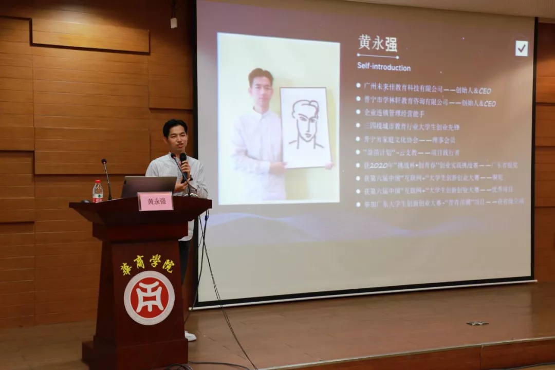 紧接着,黄永强师兄为我们简单的介绍了他所成立的广东未来佳教育科技有限公司,对比分析了互联网创业、企业轻资产以及未来佳的轻资产创业历程。他希望能通过自己的创业经历给华商学子带来创业的正能量。据此,他分享了他的创业心得: