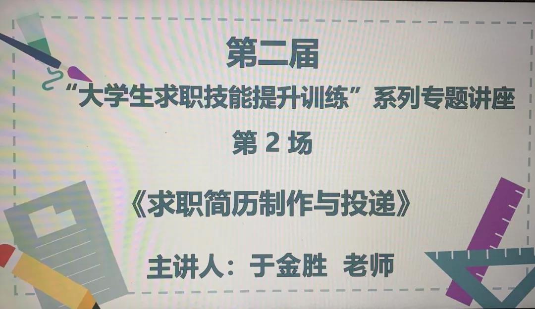 讲座伊始,于金胜老师为同学们介绍了简历的结构、内容,判断是否适合岗位要求,审核简介的合理性以及对简介的整体认识。