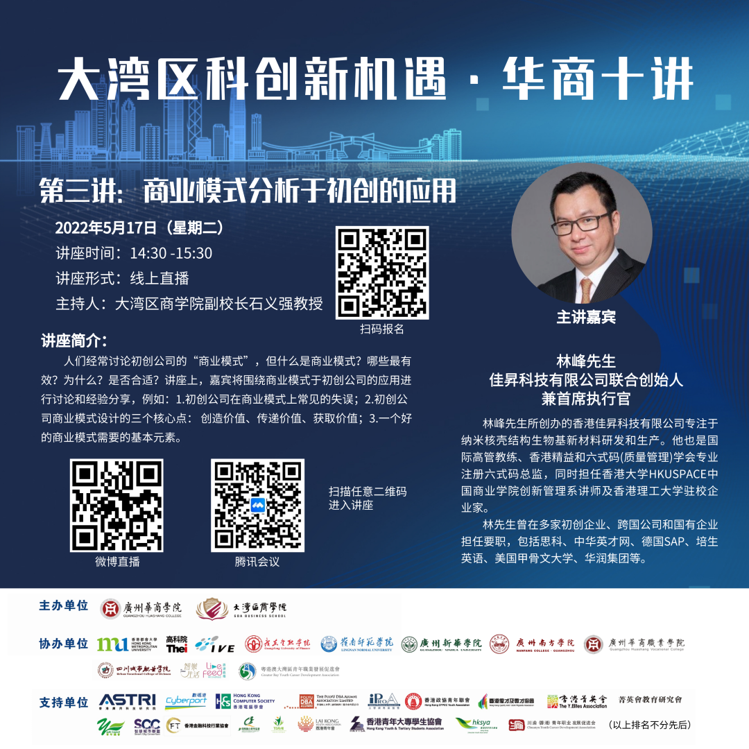 想了解创新创业所需的理念、知识、技能等,大湾区科创新机遇·华商十讲之商业模式分析于初创的应用满足你!