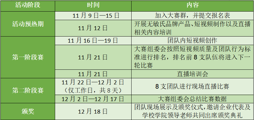 本次广州华商学院“无敏氏杯”——创新创业菁英挑战赛,参赛团队通过参与品牌方提供的产品介绍培训,以第一阶段赛(短视频创作)+第二阶段赛(现场直播带货)赛制进行比赛。