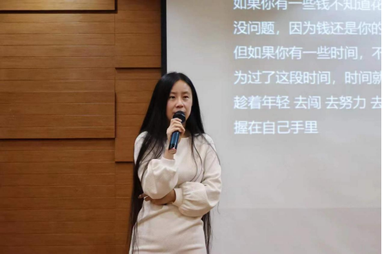 讲座的最后,李雅琼导师为我们带来最后一个部分“创业思维”的讲述,李雅琼导师用“创新+行动=结果”这一条公式来鼓励同学们要大胆创新,敢于实践,用创业思维来支持同学们不断前行。