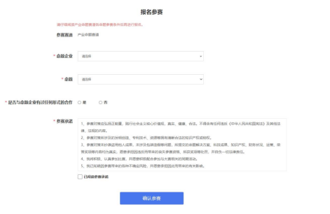个人中心点击“报名参赛”,如下图,填写“命题企业”、“命题”、“是否与命题企业有过任何形式的合作”、及“参赛承诺”后,点击“确认参赛”即可进入参赛的审核环节(报名完成后,由团队负责人所在院校进行审核)。