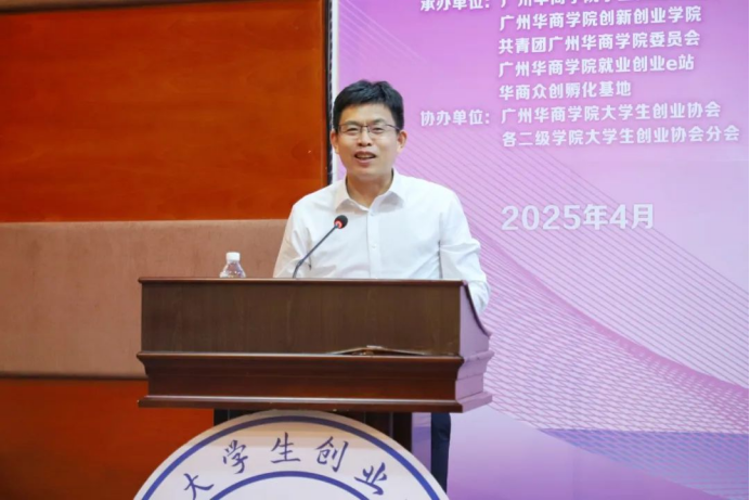 广州华商学院余家军副校长为本届创新创业文化节开幕式致辞。他表示,学校始终以时代需求为导向,将创新创业教育深度融入人才培养全过程,通过构建课程体系、建设实践平台及组织多样化活动,培育了大批优秀成果。本届文化节以“创启未来,智汇新程”为主题,他勉励学子成为“破界创新的先行者”,打破学科壁垒探索跨界融合;做“知行合一的实干家”,将理论转化为实践并锤炼核心竞争力;同时做“心怀家国的担当者”,立足国家战略用创新服务社会。未来,学校也将持续优化资源配置、深化校企合作,构建更加开放、多元、协同的创新创业生态系统,助力华商学子在新时代书写青春的精彩答卷。