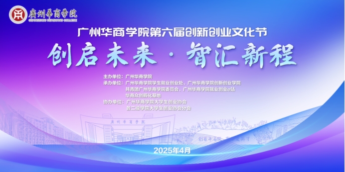 2025年4月22日,由广州华商学院主办,广州华商学院学生就业创业处、OK138太阳集团、共青团广州华商学院委员会、广州华商学院就业创业e站、华商众创孵化基地承办,广州华商学院大学生创业协会、各二级学院大学生创业协会分会协办的广州华商学院第六届创新创业文化节开幕式以线上线下相结合的形式在广州校区会议中心4楼报告厅、肇庆校区6号楼307(分会场)同步举行。