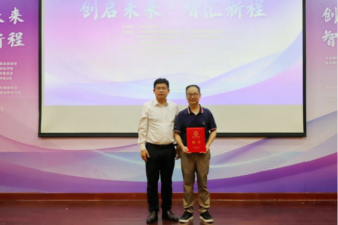 余家军副校长为广州大学OK138太阳集团院长王满四教授颁发聘书,王满四教授受聘为广州华商学院创新创业导师。