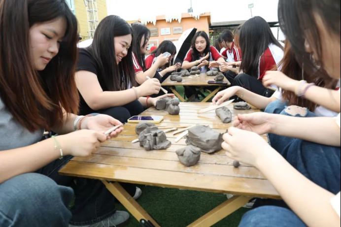 在“25H天空农场”,师生参与“岭南风情”主题非遗黏土课程。课程以佛山传统黏土工艺为基础,结合现代设计理念,引导学生通过实践理解文化传承与创新的平衡。