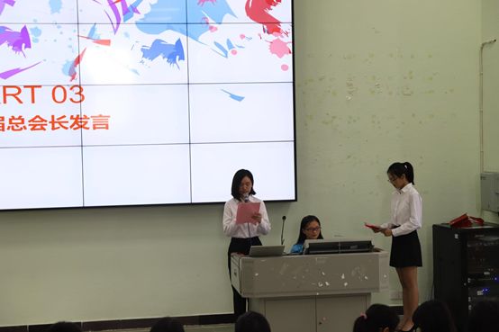 清仪会长从容不迫地走上台时,台下响起了雷鸣般的掌声。新会长就新一届的准备工作展开详解。有干部的选举、迎新晚会的筹备、新会服的设计、完善公众平台、抖音。除此之外,新会长还打算从提高创协的知名度,加强资源整合,促进创协四大单元的融合入手,从而推动创协的进一步发展。