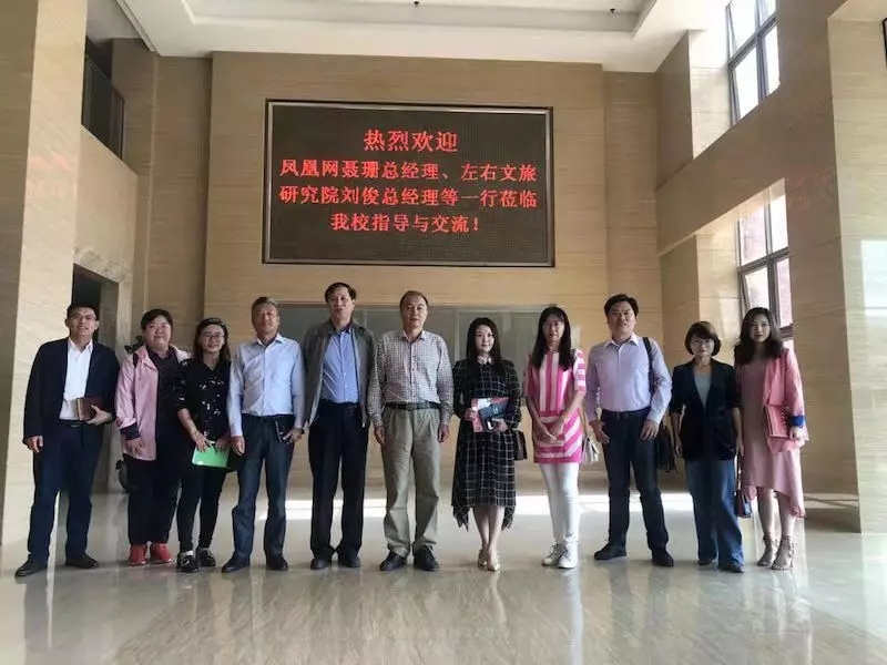 11月14日,凤凰网广东文旅频道聂珊总经理、王明明总编、王颖伦策划总监、曾敏婷媒介经理、左右文旅研究院刘俊总经理、李霞策略长、广州华粤文化旅游有限公司付卉博士一行莅临我校交流共建华商文旅研究院合作事宜。