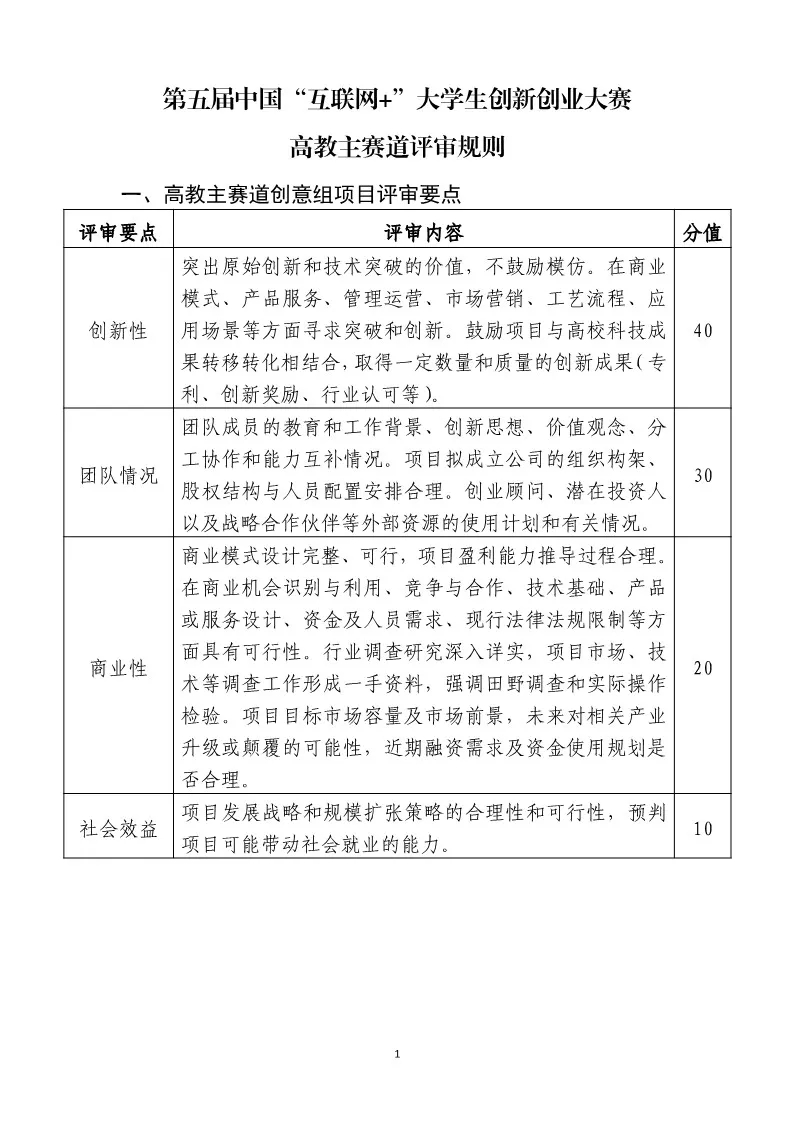 大赛速递 | 中国“互联网+”大学生创新创业大赛评审规则