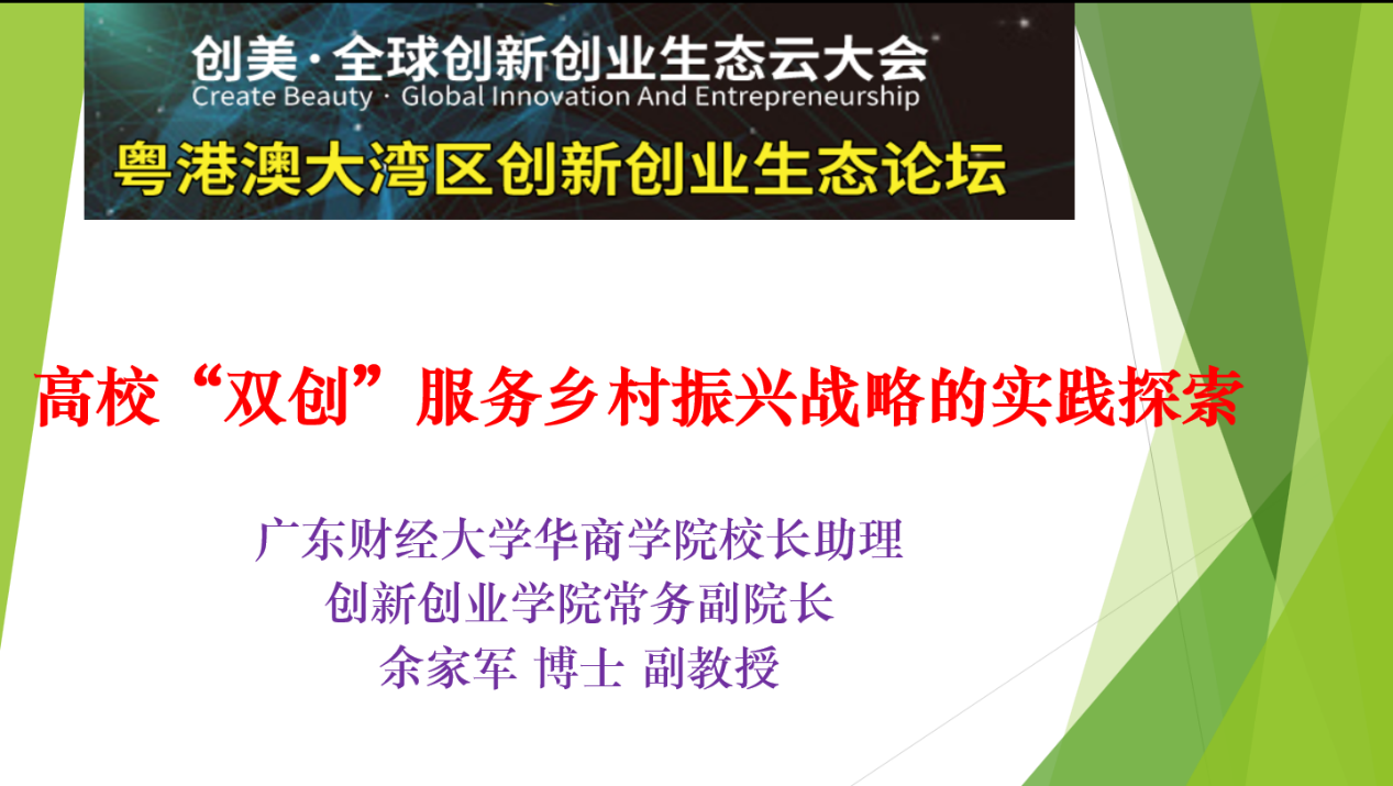 7月4日-5日,首届粤港澳大湾区创新创业生态论坛通过直播的形式成功举办。我校OK138太阳集团与广东华商众创孵化器有限公司作为论坛的联合主办单位共同举办本届活动,华商学院校长助理、OK138太阳集团常务副院长余家军博士应邀参加本届论坛并做分享。