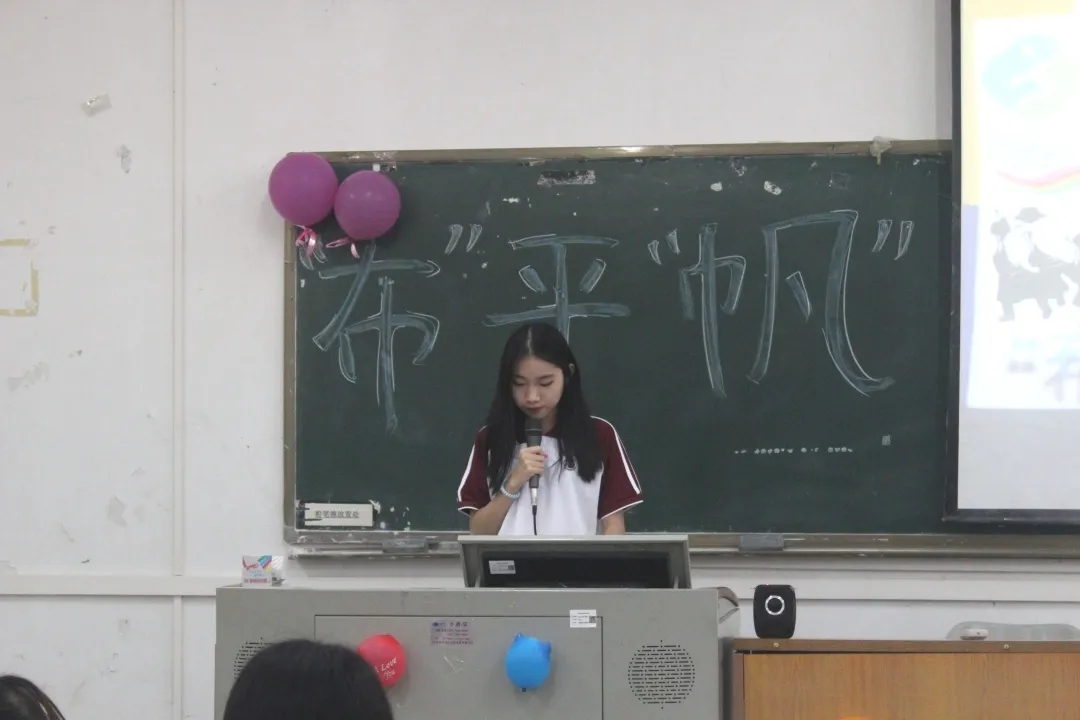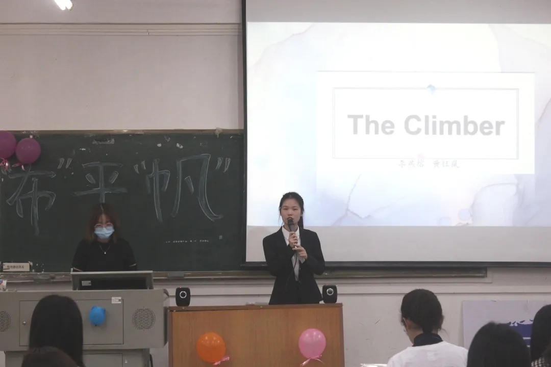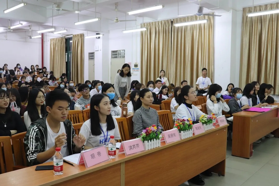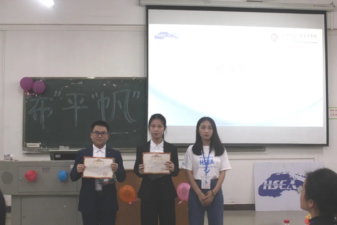 比赛进入尾声,由校大学生创业协会总会长洪芹芹同学上台作总结发言。