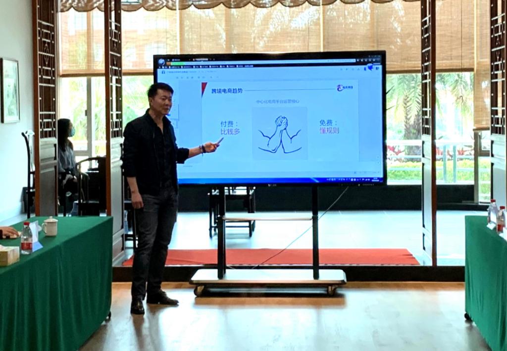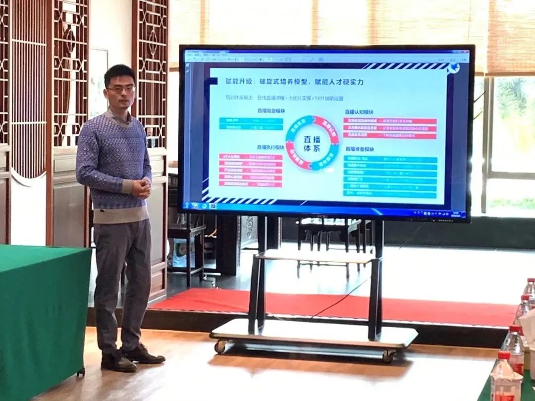 米络星集团红呗科技CEO许一帆先生和杭州龙席网络股份有限公司总经理王杨先生分别就第一届全国产教融合创新创业大赛网红直播赛道和跨境电商赛道大赛流程安排、评分规则、报名组织流程等环节进行介绍说明。