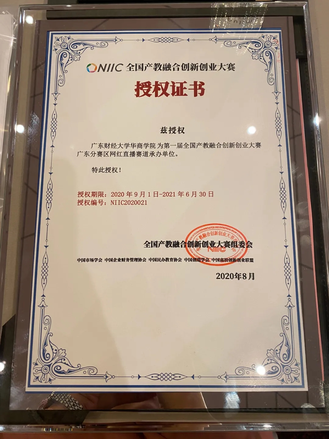 2020年8月28日,第一届全国产教融合创新创业大赛“倍凡杯”新零售赛道启航仪式在厦门举行,我校受邀领取第一届全国产教融合创新创业大赛广东省分赛区网红直播赛道承办单位授权证书。本届大赛围绕“产教融合,‘创’见未来”这一主题,通过多赛道联动共建产教融合一体化双创平台,构建产教融合创新链,助推产教融合协同发展。