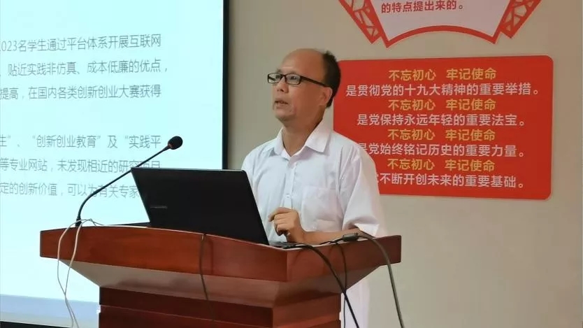 会上,严明副教授做了题为《经管类大学生互联网+创新创业实践教育平台体系的构建研究》的主题报告,介绍了经管类大学生互联网+创新创业实践教育平台体系研究项目的思路与步骤、技术线路、平台调查、平台设计、实施效果、存在的问题、以及项目展望等。2018-2019年度第一学期以来,将该平台体系应用于学校部分专业和班级的《创业管理》课程教学实践,先后有8个专业23个班级共1023人参加实训,取得6项省内外大学生创业大赛奖励。