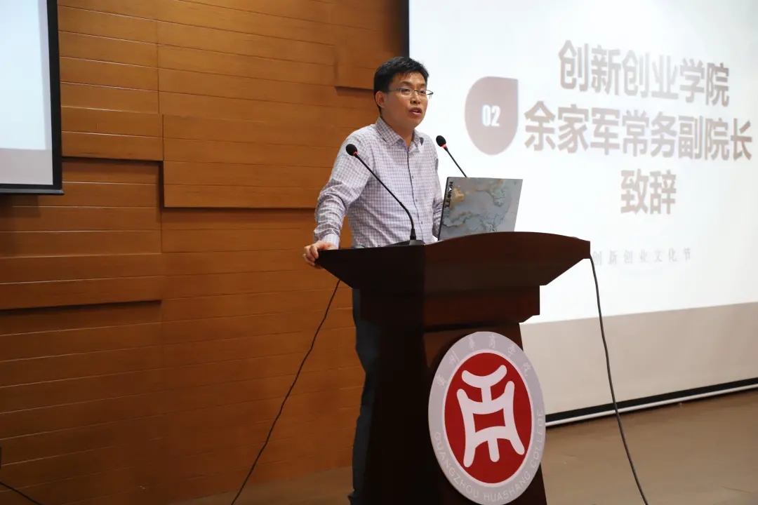 余家军院长为本次闭幕式致辞。首先,他对第二届创新创业文化节系列活动取得的成果表示肯定,希望同学们能在活动中有所收获。此外,他针对校创协活动举办情况提出自己的建议,对协会的发展赋予期望,希望协会的学生干部们能抓住在每一次活动中历练的机会,成长进步。