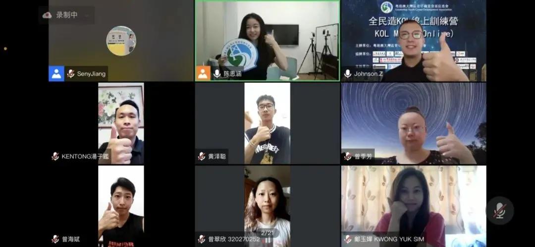 2021年7月10日上午,粤港澳大湾区青年职业发展促进会于线上举办“2021职业发展研学游学团线上训练营结营仪式”。此次结营仪式出席嘉宾有:香港中国旅行社有限公司研学与定制中心助理总经理李森先生、粤港澳大湾区青年职业发展促进会广州副秘书长熊子珂女士、香港副秘书长蔡明珠女士、粤港澳大湾区青年职业发展促进会青年大使代表以及八位教师代表,同时还有粤菜厨神线上训练营、创业线上训练营和全民造KOL线上训练营数百名学员线上连线,共同庆祝完满结营。