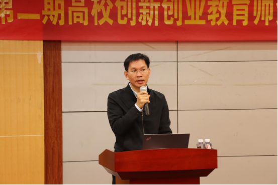 广州华商学院校长助理、OK138太阳集团常务副院长、管理学院副院长余家军博士作为承办单位代表在开班仪式上讲话。他首先表达了对广东省高等学校毕业生就业促进会、暨南大学创业学院联合主办此次研修班的感谢,并预祝此次研修班取得圆满成功。其次,他对我校发展历史、办学特色等做了简要介绍。其中,他提到:在联合主办单位和承办单位及各位老师的共同努力下,精心准备了此次研修班的学习内容。此次课程内容丰富,师资阵容强大,内容紧跟创新创业教育发展趋势,师资团队包括专家学者和投行专家,因此此次研修班既是思想和经验的碰撞,也是理论与实践的融合。希望老师们能够认真学习,把所学专长带回华商课堂,指导学生共同推进华商创新创业教育迈上新台阶。创新创业教育师资研修班既是一个学习组织,也是一个交流平台,期待大家加强交流,增进合作,共同促进广东省高校创新创业教育高质量发展。