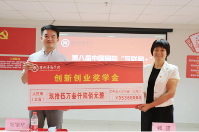 随后,郭银华执行校长和苏宁书记为在第七届中国国际“互联网+”大学生创新创业大赛省赛中荣获银奖和铜奖的团队颁发荣誉证书。王锦秀副校长为获得创新创业奖学金的学生代表颁发奖金。