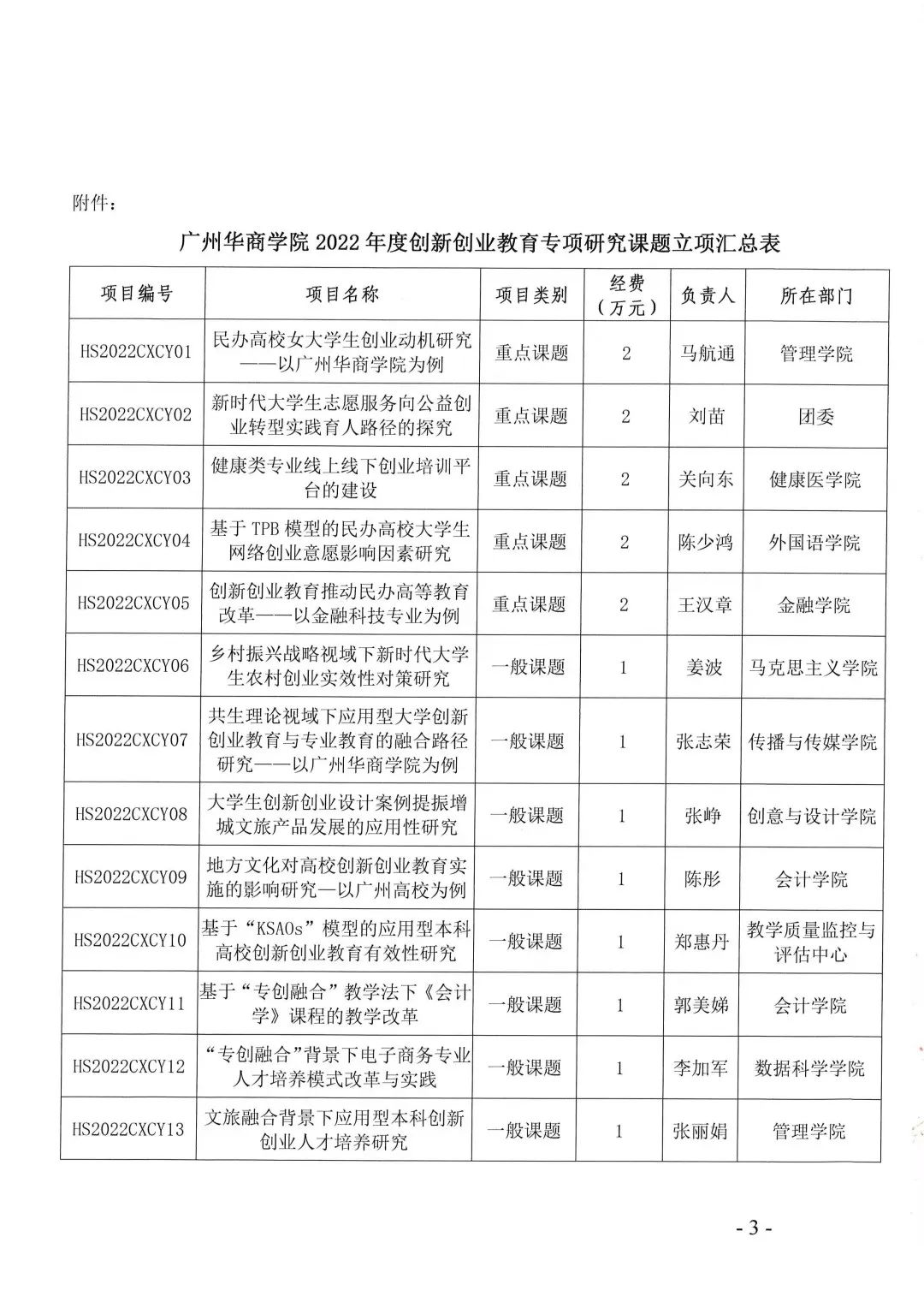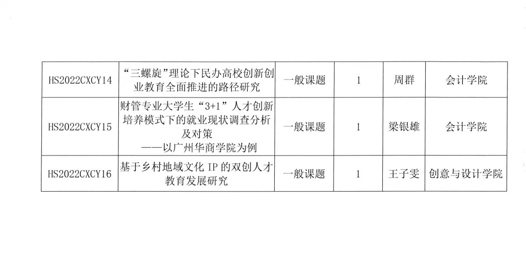 广州华商学院关于2022年度创新创业教育专项研究课题立项的通知