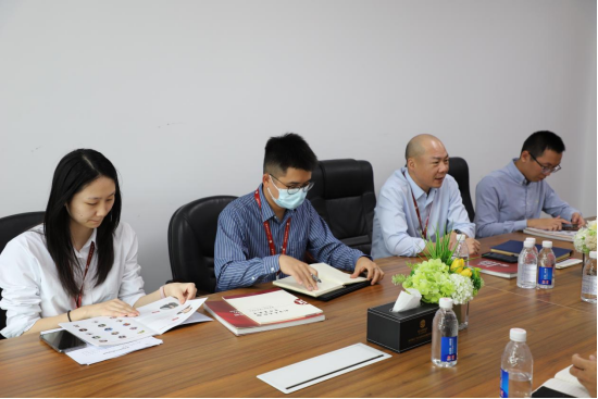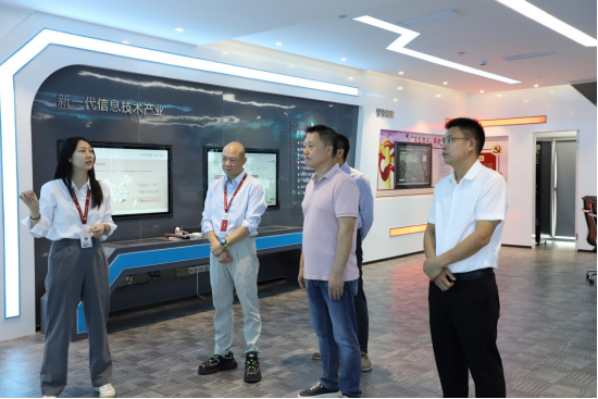 彭秀东教授一行在苏总的陪同下参观了信科集团数字化指挥中心的数字化转型进程、新一代信息技术应用、数字化成果展示等展区。随后,双方就华商数研院如何与信科集团展开合作进行了座谈。