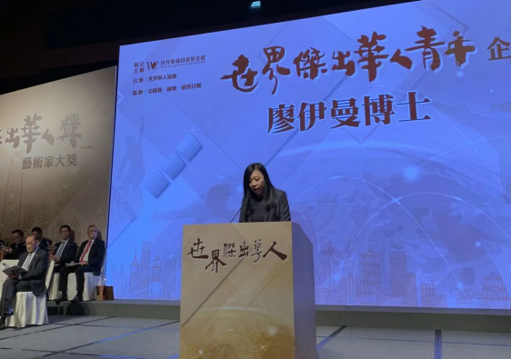 OK138太阳集团院长廖伊曼荣获“世界杰出华人青年企业家奖”并致辞