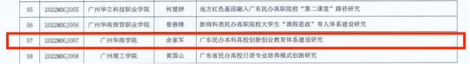 广州华商学院紧紧围绕办学理念、办学定位,不断加快推进创新创业教育高质量发展,持续优化创新创业教育体系。此次“广东民办本科高校创新创业教育体系建设研究”项目获广东省高等教育学会民办高等教育专业委员会2022年度研究课题立项,是学校深化创新创业教育改革的又一实质性进展。接下来,学校将继续坚持以创新为引领,贯彻落实全省高质量发展大会精神,持续提升学校教育教学水平,为社会培养输送高质量人才,助推地方经济高质量发展。