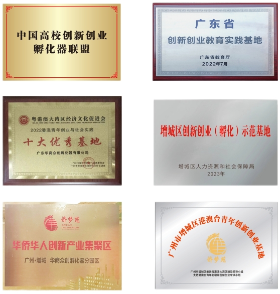 基地先后被认定为广州科技企业孵化协会会员单位、增城侨梦苑华商分园区、增城区港澳台青年创新创业基地、广东省创新创业教育实践基地、大湾区湾商十大港澳青年实践基地、增城区创新创业(孵化)示范基地、广州市创业孵化基地。