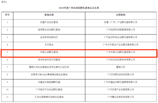 近日,根据《广州市人力资源和社会保障局2022年度广州市创业孵化基地认定和评价结果的公示》,华商众创孵化基地成功被认定为市级创业孵化基地。