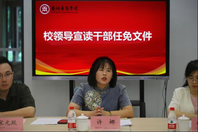 6月27日下午,广州华商学院学生就业创业处干部任命宣布大会在华商教师发展中心互动室5顺利召开。广州华商学院副校长许娜,人事处副处长杨俏文,学生就业创业处全体教职工参加会议。本次会议由杨俏文副处长主持。