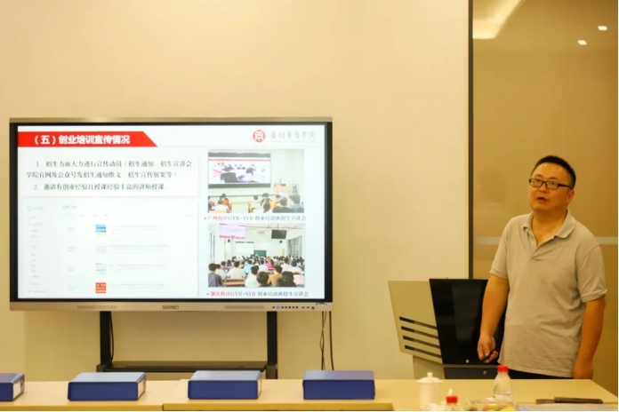 接着,创新创业教育教研室谢根仁副主任就创业培训工作开展情况、2025年创业培训工作计划、教学成果情况、2025年创业培训讲师大赛筹备工作等方面进行了详实汇报。他表示,近年来,我校始终高度重视创业培训工作,培训方式不断创新,培训规模持续扩大,创业培训工作取得显著成效。同时,我校创业培训工作尚不能完全满足经济新常态下推进大众创业、万众创新的需要,未来我校也将进一步健全培训制度、积极创新培训模式、着力提升培训质量,大力加强创业培训工作力度,推动创业培训工作迈上新台阶,为经济社会发展注入新的活力和动力。