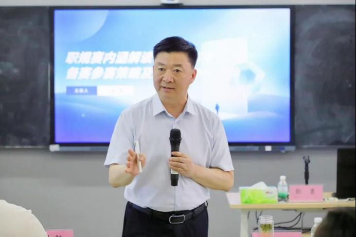 培训首日,郭勇教授围绕“全国大学生职业规划大赛”作专题解读。他系统梳理了两届大赛的时代背景与政策导向,深入解析了赛事目标、赛道设置、评审标准及材料要求等关键内容。郭教授指出,新时代职业生涯教育应注重从“知识传授”向“能力塑造”和“价值创造”转型,引导学生树立正确的成才观、就业观和择业观,增强综合素质与岗位胜任力。他结合评审案例,就项目挖掘、报告撰写、现场展示等环节提出具体建议,为教师指导学生参赛提供了清晰路径与方法支撑。