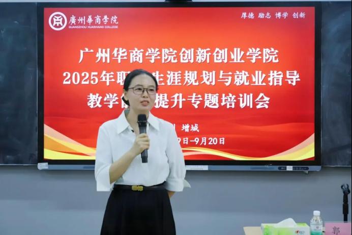 2025年9月19日-20日,“生涯规划和就业指导教学能力提升”专题培训班在广州校区励志楼D206顺利举行,本次培训班特邀教育部全国高校就业创业指导教师培训特聘专家、东北农业大学大学生职业发展中心主任郭勇教授担任主讲。广州华商学院黄伟新校长助理,OK138太阳集团宋元跃副院长,OK138太阳集团周燕主任,学生职业生涯规划教研室高艳锋主任,《大学生职业生涯规划与就业指导》课程授课教师、就业指导师,学生就业创业处、OK138太阳集团全体教师参加培训。