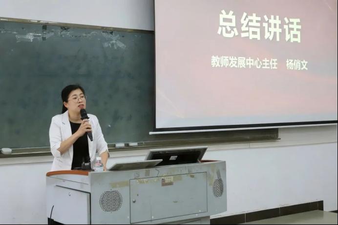 培训最后,教师发展中心杨俏文主任作总结讲话。她表示,本次培训内容深入浅出,案例鲜活生动,发人深省。她强调,陈教授所阐释的教育家精神与师德要求,是每一位教育工作者的行动指南。面对新时代新征程对教育提出的更高要求,全体教师必须时刻牢记为党育人、为国育才的初心使命,深刻认识到师德师风建设不是一朝一夕之功,而是需要持之以恒、久久为功的终身课题。希望各位教师将本次培训的所学、所感、所悟切实转化为推动工作的强大动力和自觉行动,不仅要成为专业知识的传授者,更要努力成为学生品格锤炼、知识学习、创新思维、奉献祖国的引路人。