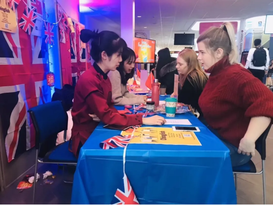 (孙一凡参加社团活动,向外国友人介绍中国文化)