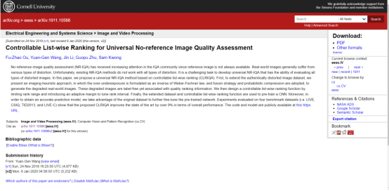 Fu-Zhao Ou, Yuan-Gen Wang*, Jin Li, Guopu Zhu, Sam Kwong, “Controllable list-wise ranking for no-reference image quality assessment.” arXiv: 1911.10566 (已提交至Transactions on Multimedia (TMM),CCF推荐期刊,图像处理领域顶刊).
