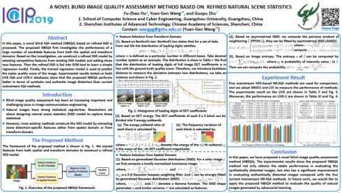 Fu-Zhao Ou, Yuan-Gen Wang*, and Guopu Zhu,“A novel blind image quality assessment method based on refined natural scene statistics,” In the 26th IEEE International conference on Image Processing (ICIP2019), Taipei, Taiwan, pp. 1004-1008, 2019. (CCF推荐会议,图像处理领域著名国际旗舰会议).