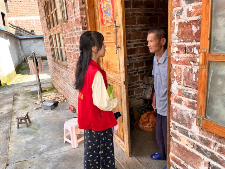 ▲ 赖雪莹入户走访家庭生活困难老党员