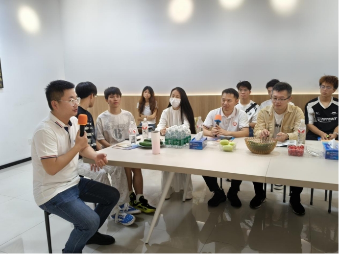 参观结束后,师生们与林灿煌总经理在会议室进行了座谈交流。林灿煌讲述了他的创业经历、公司发展历程以及智能家居行业的发展趋势。他建议学弟学妹们专注所学专业,关注行业前沿动态,认识自身优势、劣势及职业期望,持续学习与探索资源以适应职业环境变化。