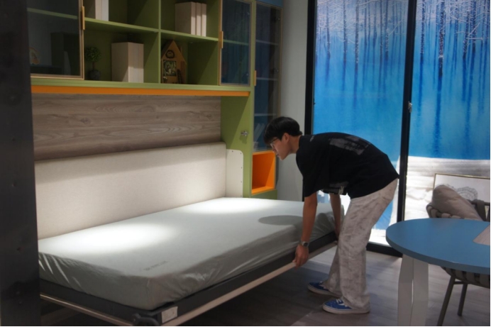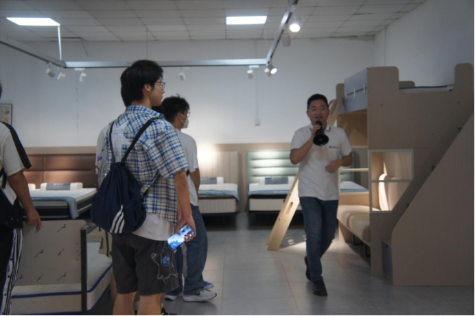 随后,师生一行前往青春飞扬智能家居的展示体验中心参观,重点了解了公司的主打产品——多功能智能床。该产品针对小面积住宅空间设计,集睡眠、储物、娱乐等功能于一体。参观过程中,各专业学生对该产品表现出兴趣,并就床体传感系统、智能控制逻辑等方面提出了问题,现场交流气氛积极。