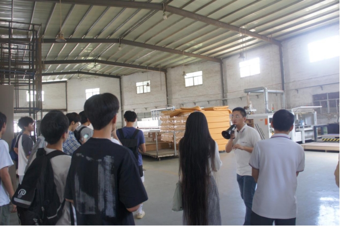 林灿煌校友接待了广州华商学院师生一行,并带领师生参观了公司的智能家居产品生产工厂。在参观过程中,师生们了解了从原材料选配、加工流程到成品组装的生产环节。工厂环境整洁有序,自动化与信息化应用程度较高,让师生们对现代智能家居生产线的实际运作有了直观认识。