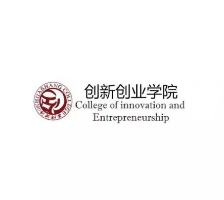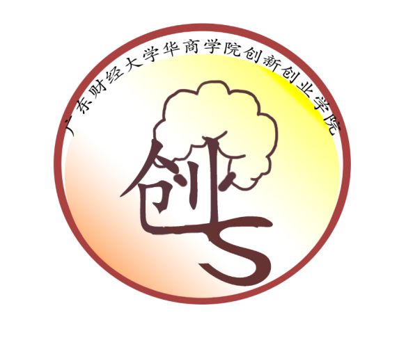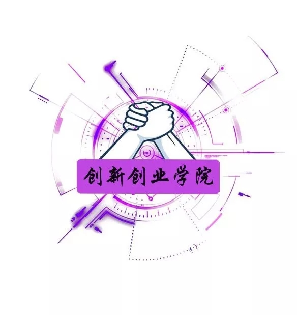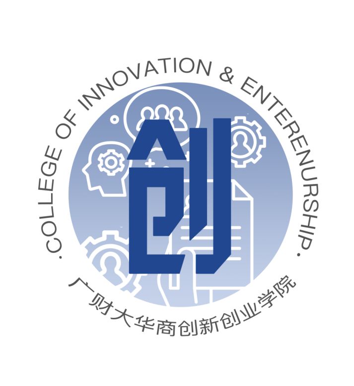 行楷字体,突显创新创业的干练、利落感;以两个同色系的圆圈勾显logo形状,其中主题部分跨越内圈但仍处于外圈内,寓意创新创业的过程需要不断突破自我同时不忘初心;运用蓝红渐变色的华商学院校徽图案作为底图,保留了华商元素。