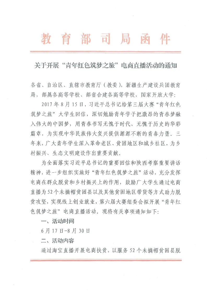 “青年红色筑梦之旅”电商直播活动来啦。相关活动通知如下。