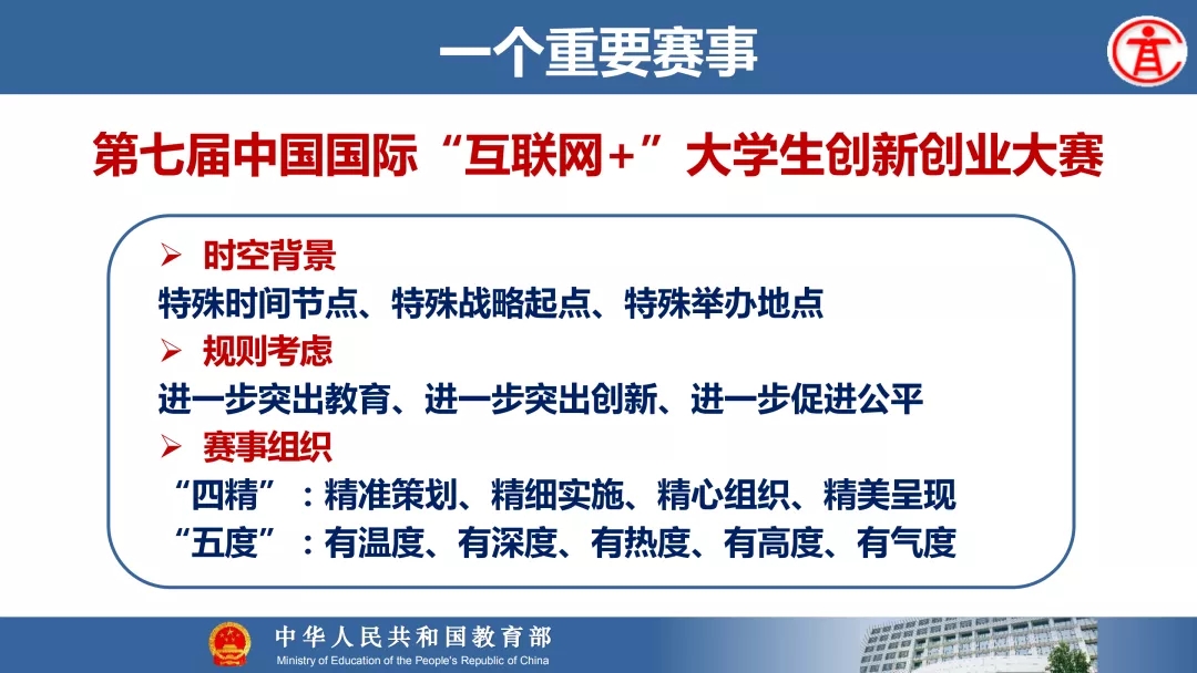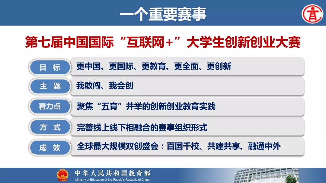 以下为吴岩司长《夯实教学“新基建” 托起培养高质量》主题报告PPT中关于第七届中国国际“互联网+”大学生创新创业大赛的内容: