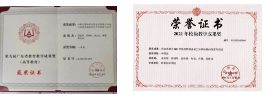 创新创业人才培养改革实践成果获广东省本科教育教学成果奖一等奖,校级奖特等奖一项。