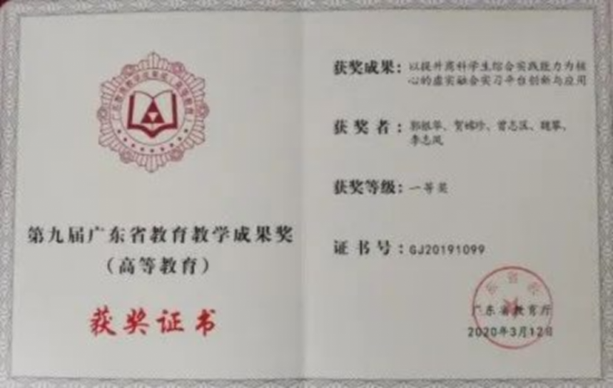创新创业人才培养改革实践成果获广东省本科教育教学成果奖一等奖,校级奖特等奖一项。